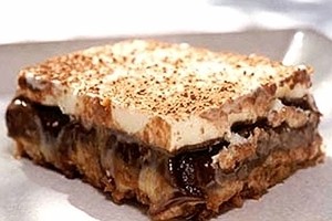 – Intercale as camadas de bolachas, uma no sentido vertical e outra no sentido horizontal
