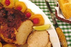 – Coloque o pernil em um recipiente e tempere com alho, louro, tempero pronto, pimenta, sal e suco de laranja ou vinho batidos previamente no liquidificador. Distribua as fatias de bacon e espalhe a margarina sobre o pernil. Deixe no tempero por 24 horas (para pegar gosto). Coloque o recipiente do pernil sobre uma assadeira e cubra com papel alumínio. Leve ao fono pré aquecido 180°C por cerca de 1 hora. Vire-o. Após cozinhar de ambos os lados, retire o papel e deixe dourar. Termine de assar e retire as fatias de bacon.