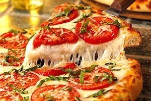 – Decore com rodelas de tomate, cebola e polvilha folhas de manjericão e orégano.