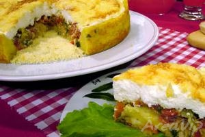 – Em um recipiente coloque a mandioquinha cozida e espremida, as gemas, queijo ralado e o sal (opcional). Agregue a farinha aos poucos. Distribua a massa em uma assadeira redonda nº24 de fundo falso. Espalhe o recheio e sobre ele a cobertura. Polvilhe com o queijo ralado. Leve ao forno a 180ºC por 15 a 20 minutos.
