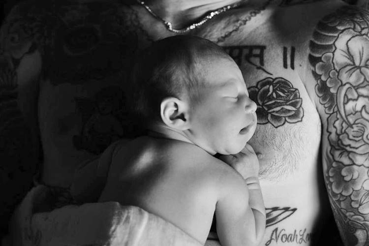 Logo no primeiro click, o vocalista do Maroon 5, exibiu o rostinho da única filha, fruto do casamento com a modelo Behati Prinsloo e derreteu os coraçõezinhos de seus seguidores. Na imagem em preto e branco, a pequena Dusty aparece deitada no colinho do pai, enquanto tira uma soneca.