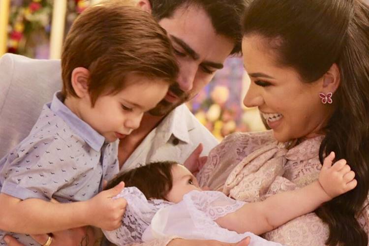 Mas o que chamou atenção foi uma imagem em que ela mostra o rostinho da menina de 8 meses, pela primeira vez, na rede social: “Um passo importante foi dado em sua vida, filha! O seu batismo! Pedimos a papai do céu que te abençoe e proteja durante toda a sua! Você é a bonequinha de porcelana da vida da mamãe, do papai e do irmãozinho! Te amamos muito! Nunca se esqueça disso!“, escreveu na legenda.