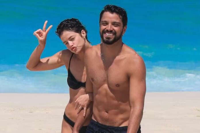 O casal foi flagrado tomando banho no mar do Rio de Janeiro, na Barra da Tijuca, zona oeste da capital fluminense. Rodrigo Simas e Agatha Moreira foram clicados caminhando de mãos dadas em direção ao mar.