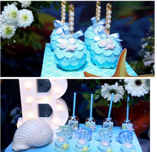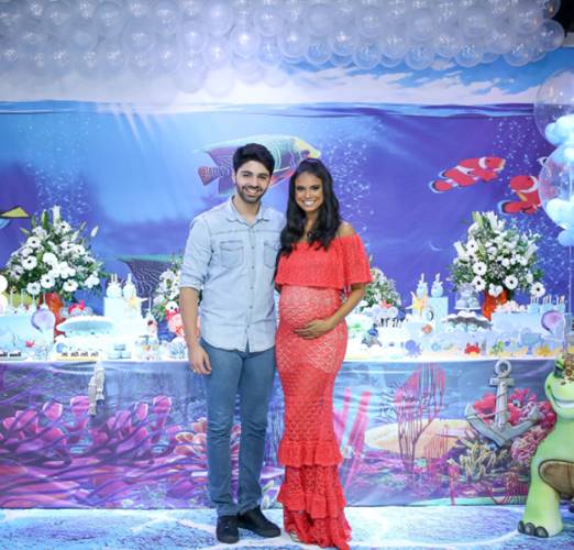 Aline Dias dividiu com seus seguidores novos detalhes do chá de bebê que fez para Bernardo, no último domingo (10)! Com a temática fundo do mar, a atriz abusou dos tons de azul e doces personalizados.