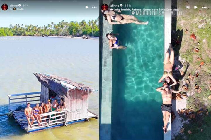 Aproveitando para descansar, ambos aparecem juntos durante viagem para Morro de São Paulo, na Bahia. Além das belas paisagens, Alinne e Caio aproveitam para curtir juntinhos, dividindo com seus seguidores alguns momentos da viagem.