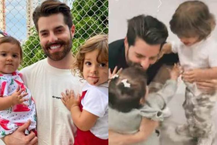 No vídeo publicado em seu perfil oficial no Instagram, as crianças correm para abraçar o paizão na maior felicidade. Estava com tanta saudade dos meus bebês! Vou ficar 48 horas no Brasil e depois volto pra turnê internacional. Vocês fazem cada segundo valer a pena! ❤ Every second with them makes it all worth it! ❤”, escreveu na legenda.