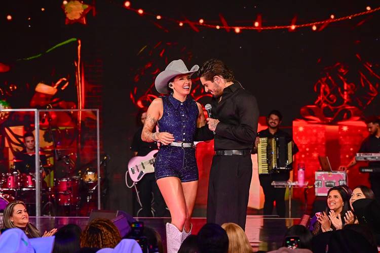 Nesta terça-feira (18), Ana Castela gravou o ‘Natal da Boiadeira‘, no SBT. A cantora recebeu vários famosos e contou com uma participação mais que especial, o namorado Zé Felipe. O casal protagonizou um beijão no palco e arrancou suspiros da plateia.