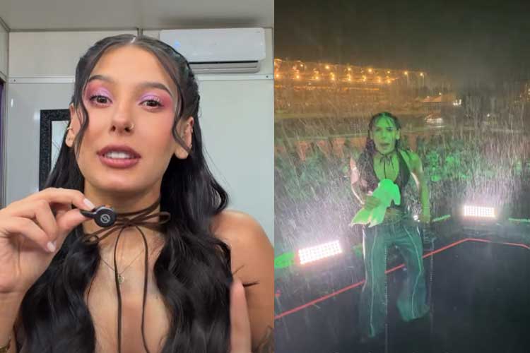 A namorada de Zé Felipe aparece em meio à forte chuva, decidindo continuar com a apresentação mesmo com o temporal. Após cumprir com o compromisso profissional, ela divulgou uma vídeochamada com o cantor e comentou que ele deve estar presente em sua próxima apresentação.
