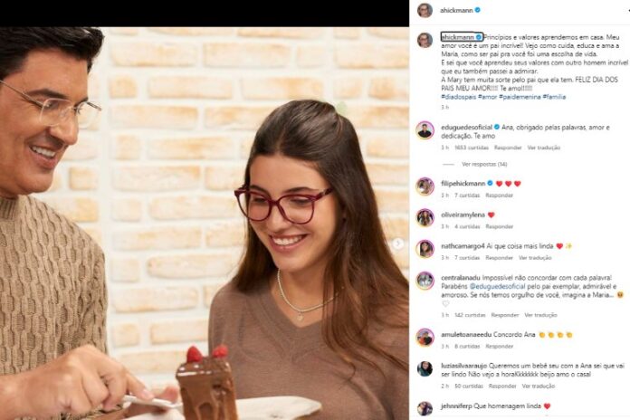 No final da manhã deste domingo, 11 de agosto, Ana Hickmann usou as redes sociais para homenagear o noivo e apresentador, Edu Guedes, e o sogro. Devido a comemoração ao ‘Dia dos Pais’, a apresentadora compartilhou várias fotos do chef de cozinha com a filha, Maria Eduarda, além de resgatar uma imagem do mais novo contratado da RedeTV! ao lado do patricarca dele.