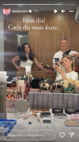 Dessa forma, por meio dos stories no Instagram, Ana Hickmann surgiu se preparando para entrar ao vivo no ‘Hoje em Dia’, da Record, e ao publicar o registro nos bastidores, ela escreveu na legenda: “Bom dia! Cada dia mais forte“, afirmou ela, após toda a polêmica familiar.