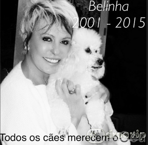 Ana Maria Braga lamentou através do Instagram, a morte de sua cadela Belinha, de 14 anos. “É com muito pesar que comunico o falecimento da minha Belinha hoje, dia primeiro, às 13h. Estou com o coração apertado, mas fico feliz por ter a certeza de que ela teve uma vida muito feliz”, escreveu a apresentadora postando uma foto ao lado de Belinha.