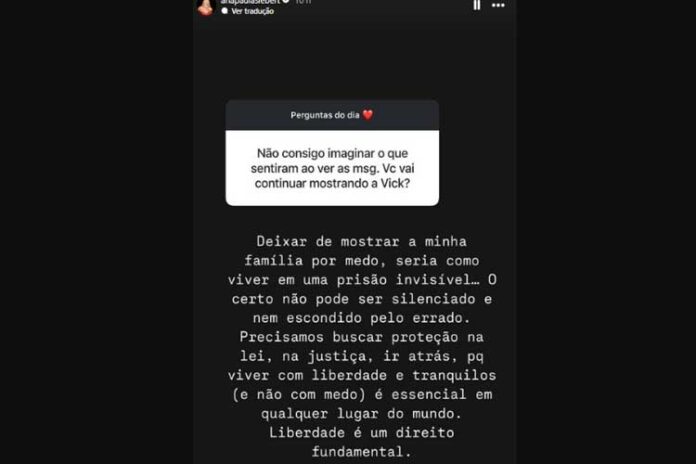 “Não, jamais! Deixar de mostrar a minha família por medo, seria como viver em uma prisão invisível”, explicou. A influenciadora acredita que casos como esse precisam ser resolvidos com a ajuda da lei.