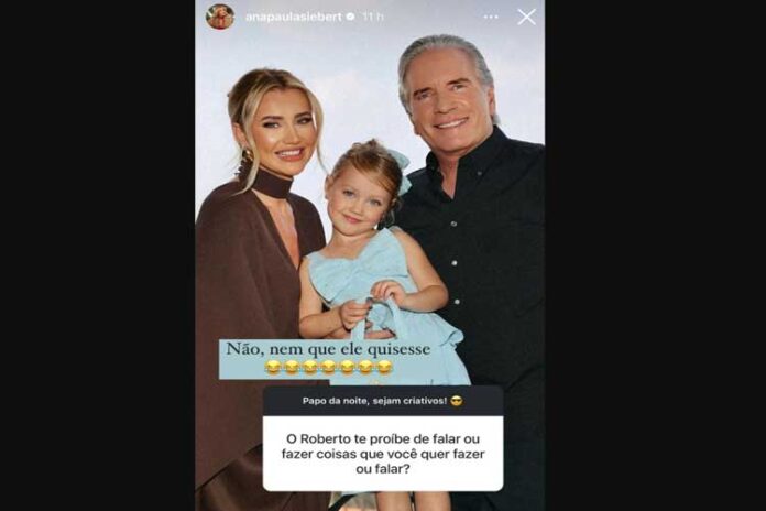 Ana Paula Siebert respondeu às perguntas de seus seguidores no Instagram nesta quarta-feira (09) e foi questionada se Roberto Justus a proíbe de falar ou fazer algo durante o casamento.