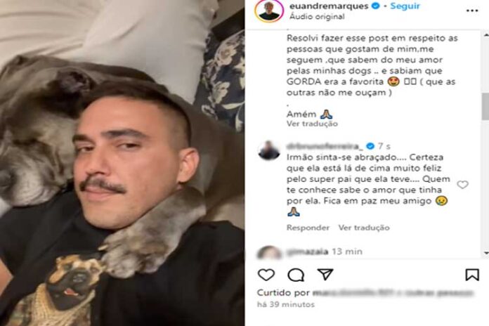 Falando sobre a perda, André descreveu os momentos de felicidade vividos ao lado de sua cadela durante quase 14 anos. “Meu dia mais temido chegou. Não sei como passei por ele… estou passando e ainda tentando entender. Meu amor maior descansou”, iniciou.