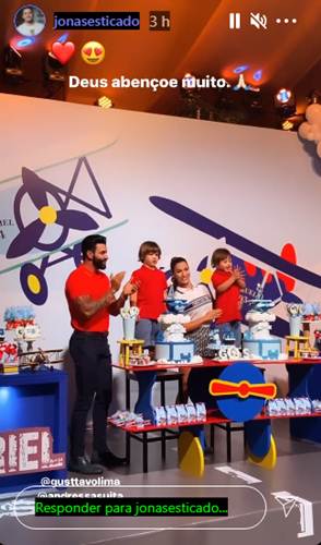 O sertanejo e a modelo ainda não compartilharam registros da comemoração. Porém, amigos da família acabaram registrando a celebração nas redes sociais. O cantor Jonas Esticado foi um dos que se empolgou e filmou parte da comemoração.