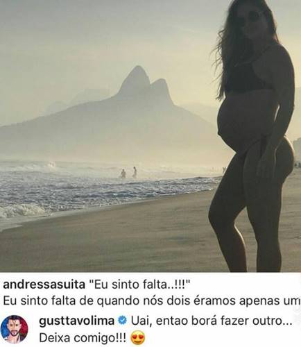 Minutos depois do post, Gusttavo Lima deixou um comentário pra lá de divertido para a esposa e afirmou que está pronto para ser papai de novo: “Uai, então borá fazer outro…Deixa comigo!”.