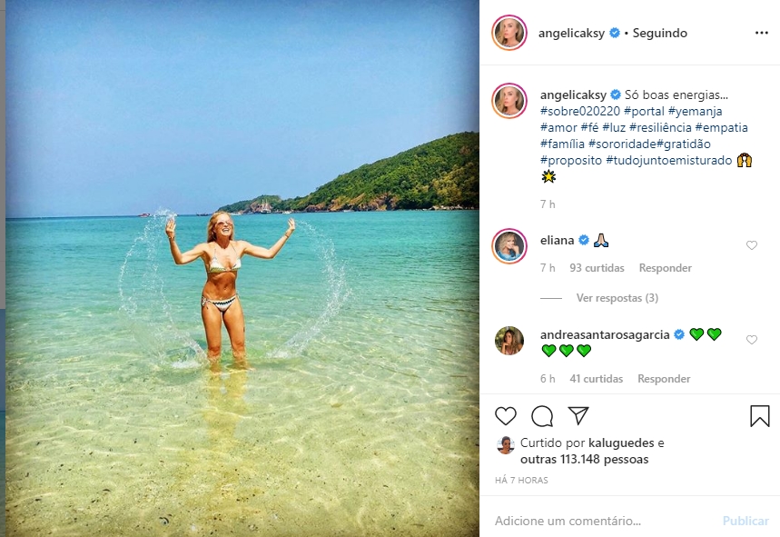 Na tarde dessa segunda feira (3), a apresentadora usou as redes sociais para compartilhar com seguidores um belo click nas águas, comemorando a data da orixá Iemanjá tomando um banho e aproveitando um dia de verão.