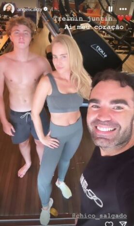 É, os filhos de Angélica e Luciano Huck cresceram e já estão malhando com a apresentadora. Nesta terça-feira, 19 de março, a estrela da televisão brasileira compartilhou um momento malhando com uma companhia muito especial: o filho Benício, de 16 anos. Eles estavam acompanhados com seu personal Chico Salgado.