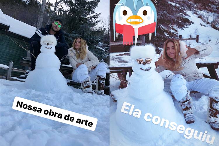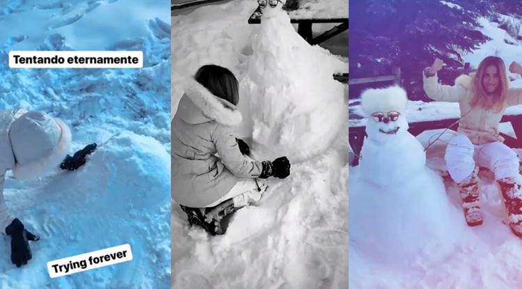 A artista postou em seu um InstaStore vários momentos tentando fazer um boneco de neve, o gato do maridão mostrou ela se esforçando para fazer o difícil boneco de neve.