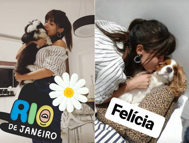 A artista exibiu a mudança ao posar em um momento ‘relax’ com seus cachorrinhos de estimação.