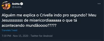 Em dia de eleição no país, Anitta não deixou barato o resultado das urnas no Rio de Janeiro. A cantora não gostou de ver o candidato e atual prefeito da cidade carioca disputar o segundo turno das eleições.