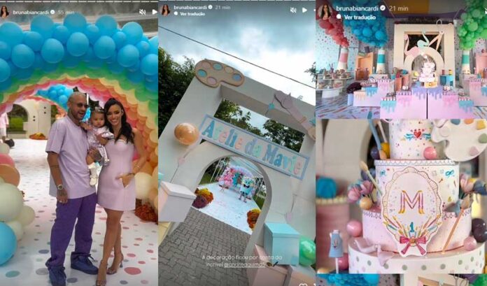 Em seu Stories, Bruna Biancardi compartilhou detalhes dos looks usados por Mavie, fruto do seu relacionamento com Neymar, em sua festa de um ano organizada no Brasil.