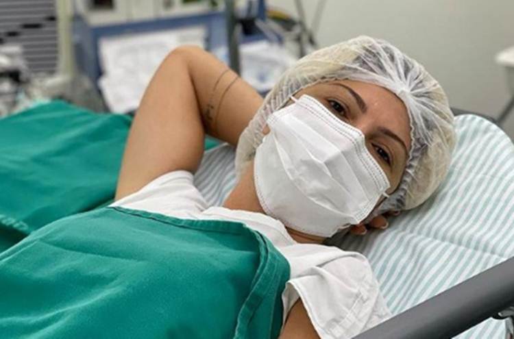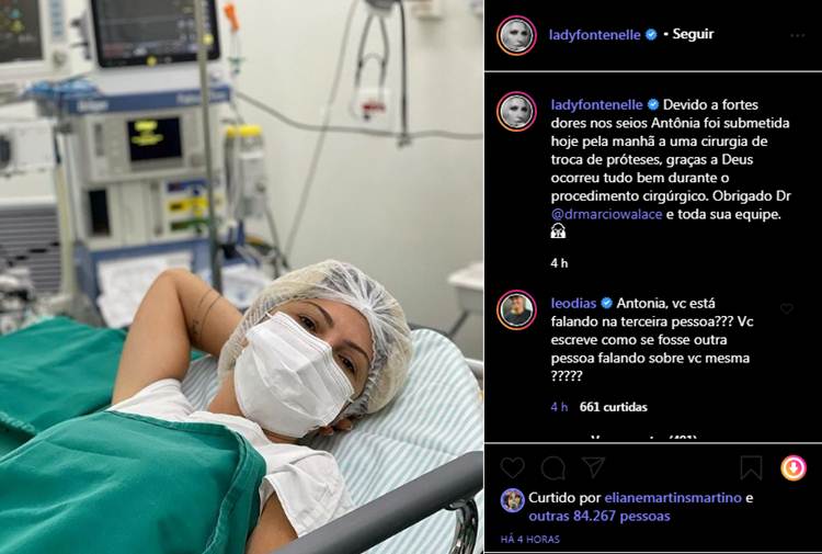 No post, Antonia surge preparada para o procedimento, usando máscara. “Devido a fortes dores nos seios Antônia foi submetida hoje pela manhã a uma cirurgia de troca de próteses”, escreveu a equipe na legenda.