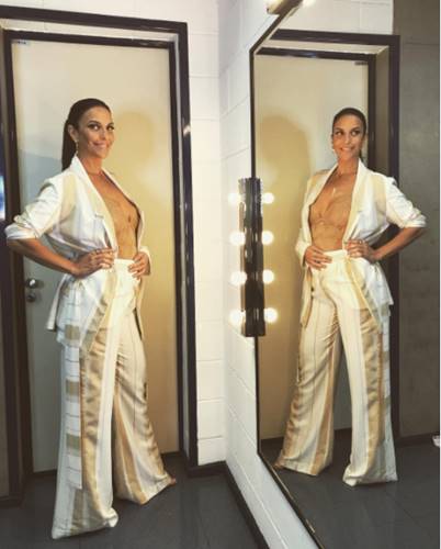 Ela posou toda elegante nos bastidores da gravação do “The Voice Brasil” exibindo a barriguinha já aparente.