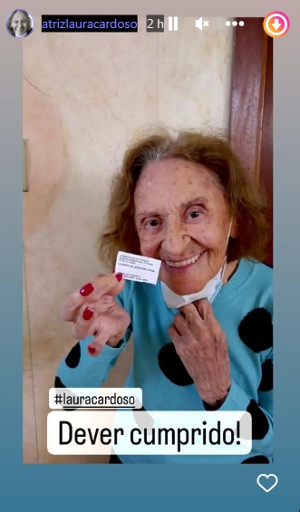 A atriz veterana ainda fez questão de registrar o momento. Em seu perfil oficial no Instagram, Laura Cardoso publicou um registro toda sorridente segurando o comprovante de voto. “Dever cumprido”, escreveu ela na legenda do post nos stories da rede social.