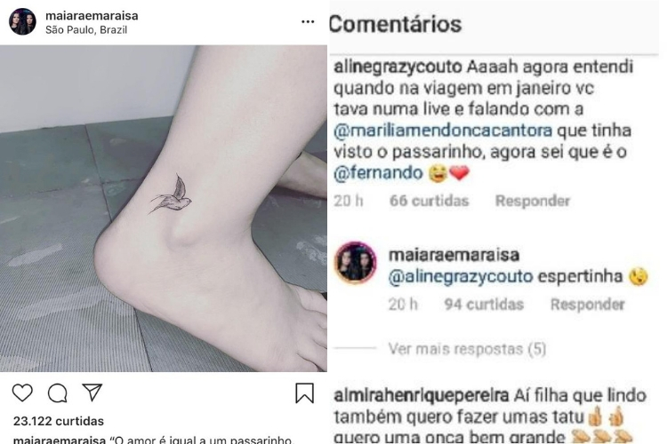 A tatuagem de Maiara é em homenagem ao novo romance da sertaneja. Na legenda, ela deixou uma mensagem para lá de reveladora sobre a marca: “O amor é igual a um passarinho, cuide-o bem e deixe-o livre, que jamais ele irá embora”, finalizando com a hashtag #NovaFase.