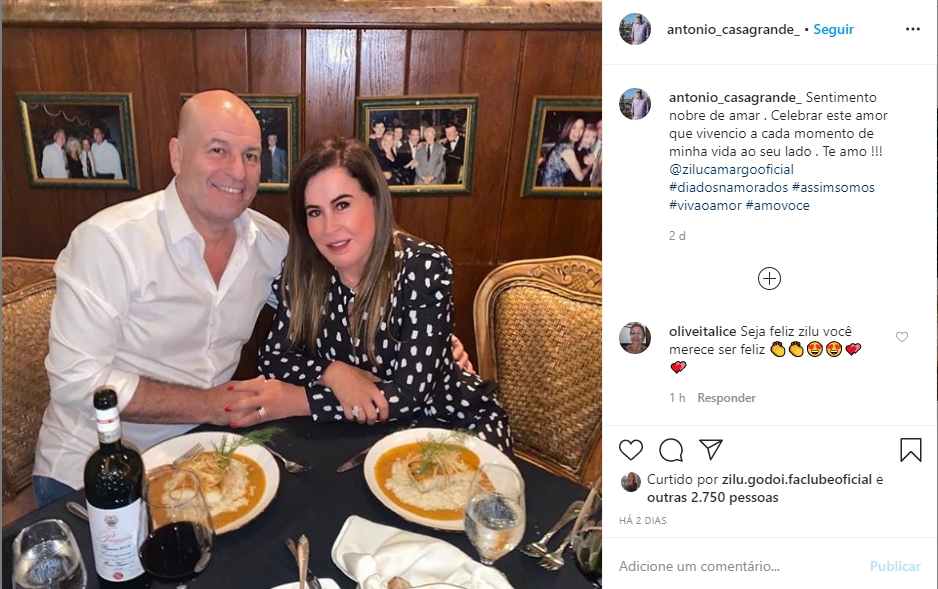 Zilu Camargo está em clima de romance com o seu novo namorado, o empresário Antonio Casagrande.