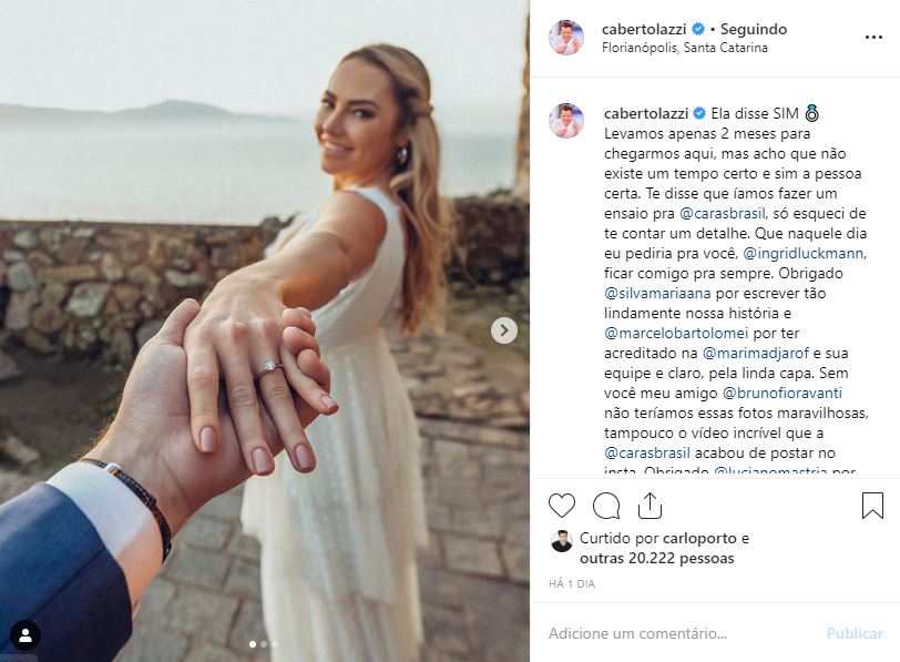 “Ela disse SIM. Levamos apenas 2 meses para chegarmos aqui, mas acho que não existe um tempo certo e sim a pessoa certa”, disse ele no post.