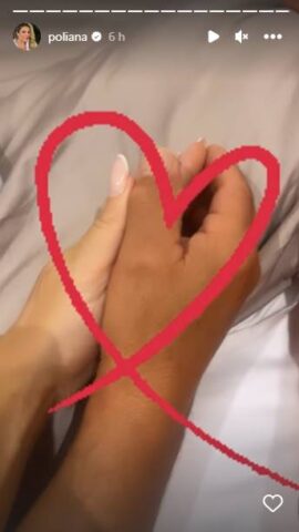 Em suma, Poliana compartilhou nos stories um clique, aonde surge de mãos dadas com o maridão, deitada em sua cama e, usando um coração para mostrar o quanto é apaixonada por Leonardo. Vale lembrar, que há poucos dias, surgiram boatos de que ele teria ‘voltado a trair’ a esposa, mas como de costume, a beldade não chegou a se pronunciar sobre as fofocas.