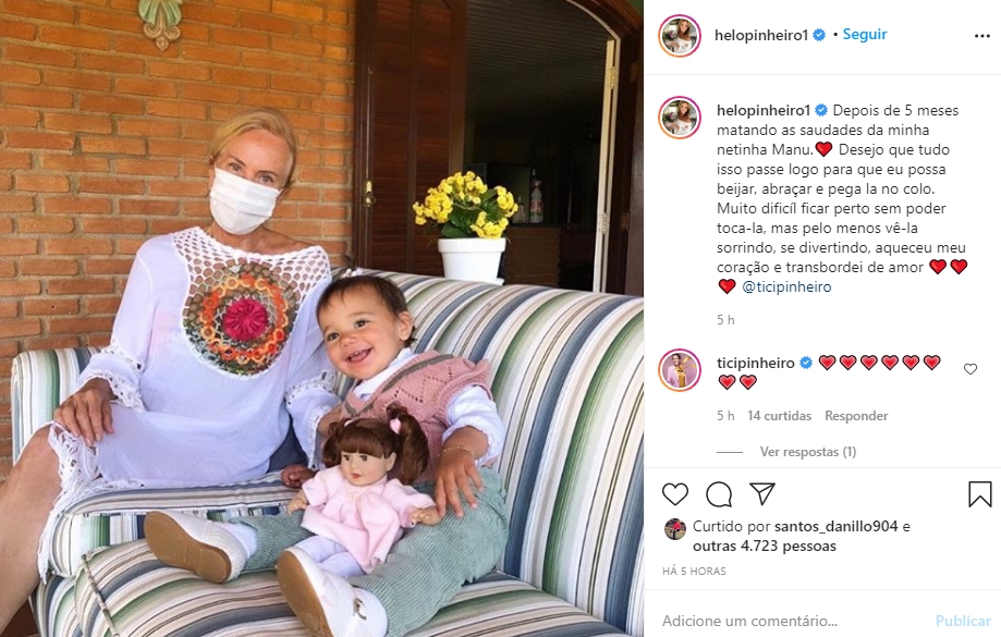 “Depois de 5 meses matando as saudades da minha netinha Manu“,começou ela.