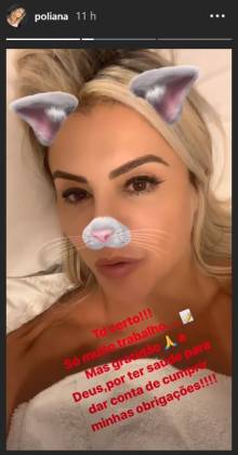 Diante disso, Poliana recorreu ao seu stories e falou sobre o assunto, tranquilizando a todos e revelando o motivo da sua ausência. No vídeo publicado, ela surgiu deitada, como se estivesse em um momento de relaxamento.
