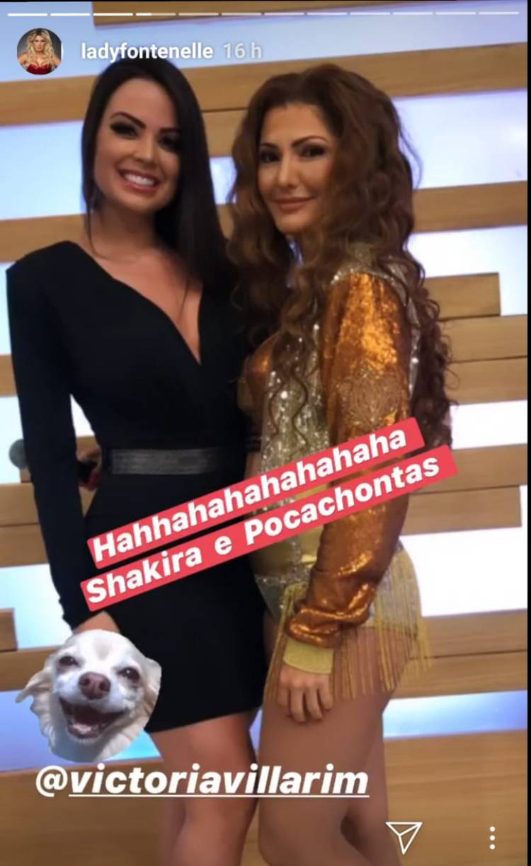 Já na nova função do programa, Victória posou ao lado de Antonia Fontenelle, que foi fazer uma participação no programa de Rodrigo Faro. A apresentadora estava fantasiada da cantora Shakira e ao postar o registo nas redes sociais brincou: “Shakira e Pocachontas”, escreveu a loira.