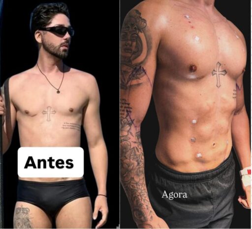 “Harmonização Corporal” é um conjunto de procedimentos estéticos que visam melhorar a harmonia, as proporções e o contorno do corpo. Rico postou em seu Instagram um antes e depois do procedimento.