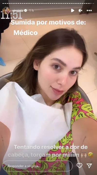 A nora de Poliana Rocha chegou a postar uma foto em sua conta oficial do Instagram Stories e escreveu o seguinte na legenda da imagem: ”Sumida por motivos de: Médico. Tentando resolver a dor de cabeça, torçam por mim.”, declarou a mulher. Na sequência ela tenta explicar o que está havendo.