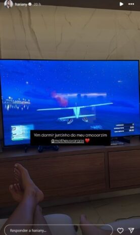 Na madrugada de quinta, 3, a influenciadora digital mostrou um outro momento especial que viveu ao lado do cantor. Ela publicou uma imagem no apartamento de Matheus Vargas, na qual os dois aparecem juntinhos em frente à televisão jogando vídeo game.