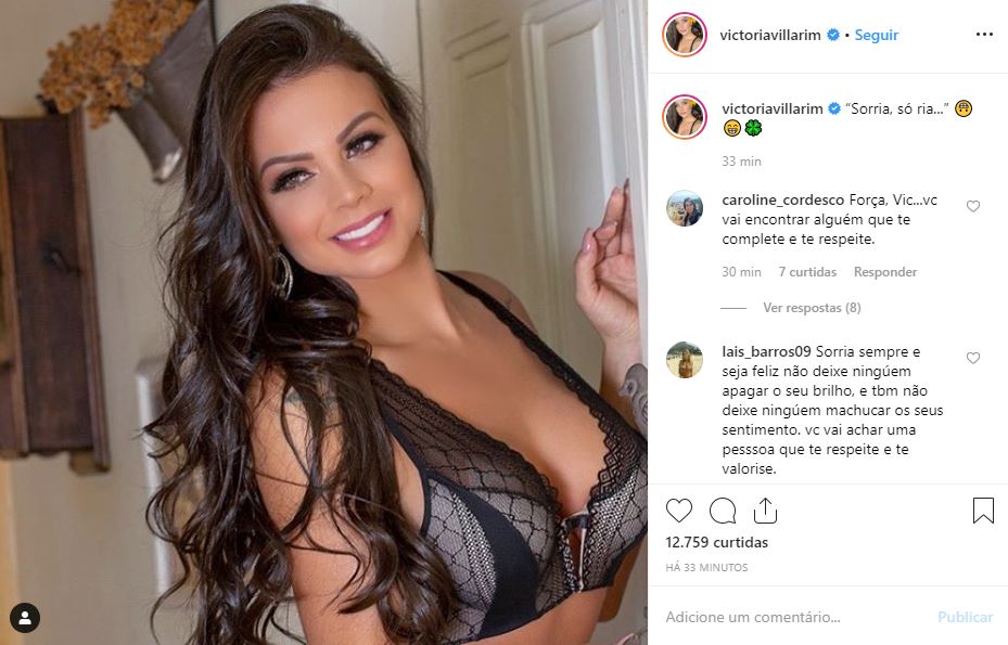 Os rumores sobre um possível término no relacionamento de Victória Villarim e o noivo Eduardo Costa não incomodaram a jovem. No começo da noite desta terça-feira ela usou suas redes sociais para postar um click onde aparece sorridente.
