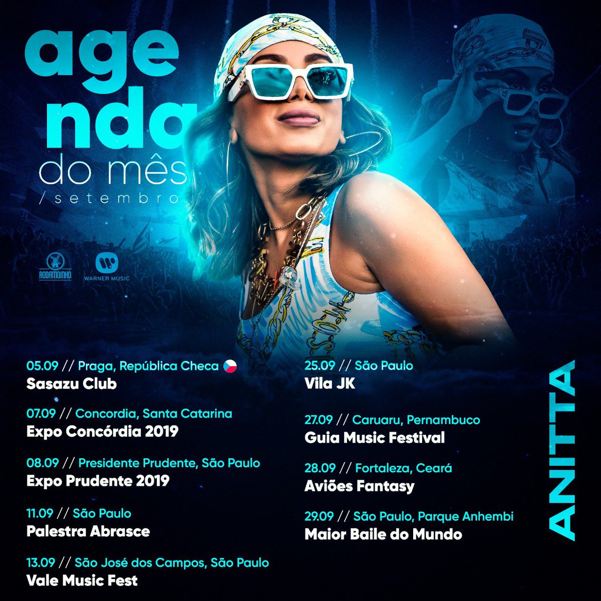 Pois é, parece que ela já está bem. Após anunciar uma pausa na carreira para tratar uma doença, chamada de estafa, a cantora Anitta já está de volta aos palcos. Na noite desta quinta-feira (6), ela mostrou em suas redes sociais, a sua agenda de shows.