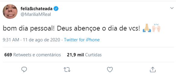 Nesta terça-feira (11), com os ânimos mais calmos, a artista usou o Twitter para desejar um bom dia aos fãs. Na publicação, fãs saíram em defesa da sertaneja, ressaltando que, mesmo que tenha errado, ela soube reconhecer o erro e se desculpar.