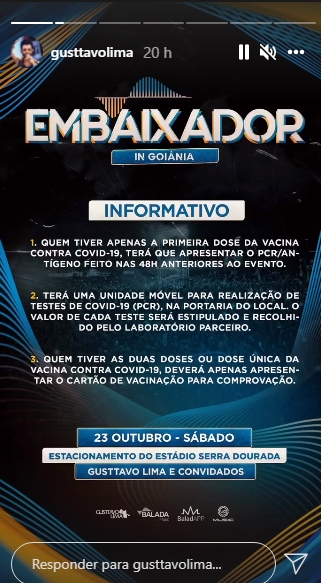 Na publicação que terá todos os protocolos sanitários respeitados pelo artista, ele ainda postou um comunicado para deixar bem claro aos fãs e seguidores que pretendem comparecer ao show.
