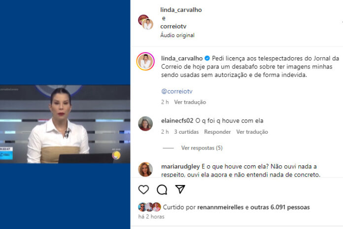 Em seu perfil no Instagram, a jornalista publicou o vídeo do momento do seu desabafo na TV, e na legenda da publicação, ela escreveu: “Pedi licença aos telespectadores do Jornal da Correio de hoje para um desabafo sobre ter imagens minhas sendo usadas sem autorização e de forma indevida”.