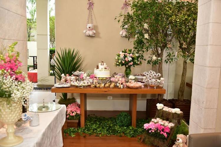 A decoração da mesa foi feita pela própria apresentadora. Ursinhos enfeitaram a festa.