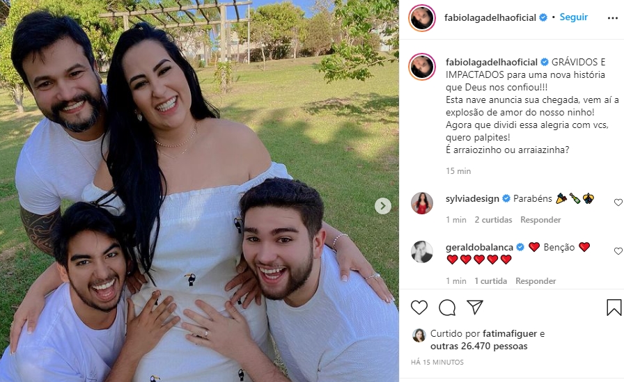 Nas redes sociais a apresentadora compartilhou com seguidores um clique. A famosa surge com a família, marido e filhos anunciando a novidade.