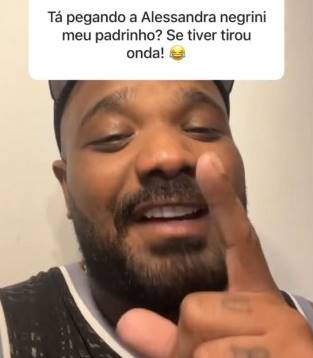 Dessa forma, por meio dos stories do Instagram, Arlindinho foi questionou: “Tá pegando a Alessandra Negrini meu padrinho? Se tiver, tirou onda“, quis saber o internauta. No entanto, o cantor logo fez questão de responder ao questionamento, cantando um trecho de uma canção de Dudu Nobre.