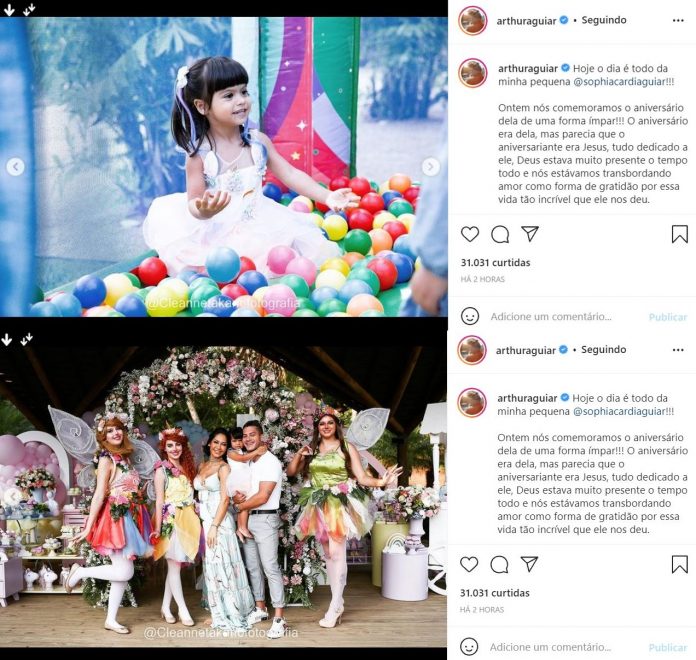 “Hoje o dia é todo da minha pequena @sophiacardiaguiar!!!”, escreveu na legenda da publicação. “Ontem nós comemoramos o aniversário dela de uma forma ímpar!!!”, emendou.