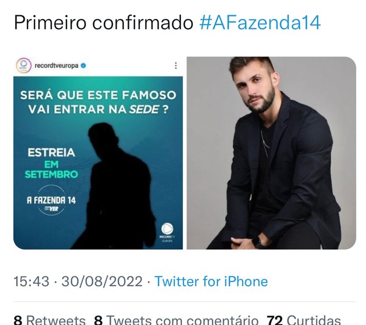 Em suma, após seu nome ser destacado nas mídias especializadas sobre TV e Famosos, Arthur Picoli negou que iria para ‘A Fazenda 14’. Pois bem, semanas após essa negação, a própria emissora confirmou sua ida para o programa, divulgando sua imagem em negrito, assim como faz todos os anos.