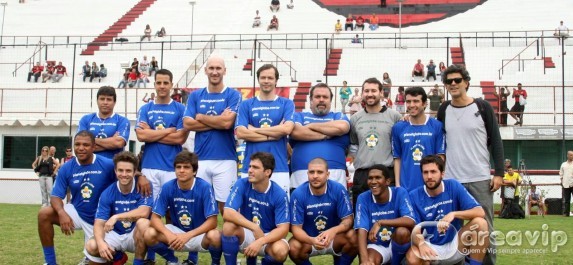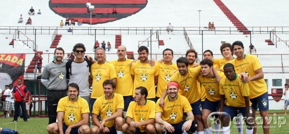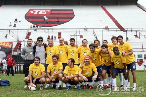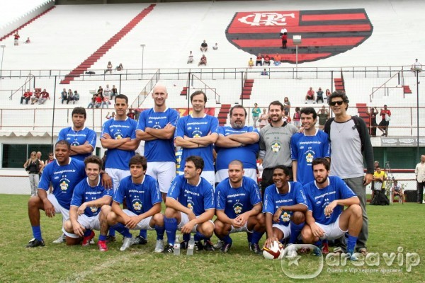 O jogo foi disputado na Gávea, sede do clube rubro negro com o time de azul de artistas flamenguistas contra o time de amarelo de não flamenguistas.
